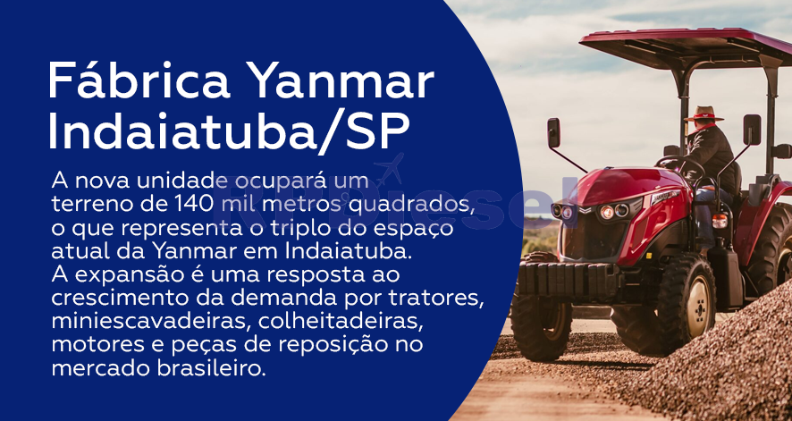 A multinacional japonesa Yanmar anunciou um investimento de R$ 280 milhões para a construção de uma nova fábrica em Indaiatuba, no interior de São Paulo. O projeto, que será executado em etapas até 2030, visa triplicar a área de produção da empresa no país e aumentar sua capacidade de fabricação de máquinas agrícolas.